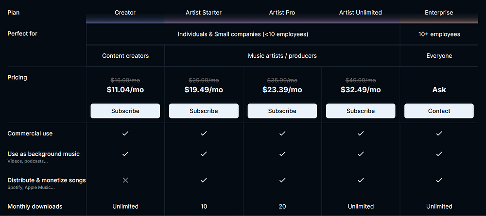 Soundraw.io is an AI music tool that allows you to generate high-quality background tracks, royalty free. The tool has been trained with their in-house-created music only. This allows you to distribute your music freely (with the Artist plans). You can generate a track with Soundraw, then add your own vocals and download the finished product to Spotify or other platform.