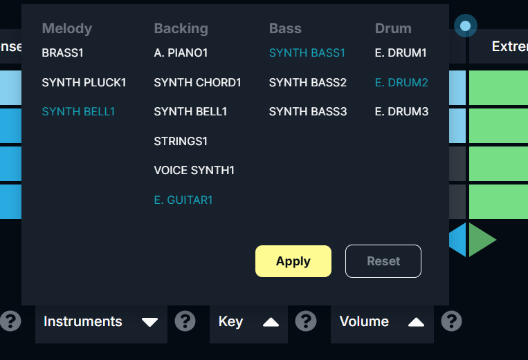 Your song is divided into blocks and you can edit each block to your liking by changing the intensity of melody, bass, drums, or adjusting the BPM and volume. The “Fills” allows you to edit transitions between sections.
